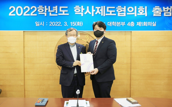 ÇùÀÇü´Â ±³¹«Ã³ÀåÀ» À§¿øÀåÀ¸·Î Çлýº¹ÁöóÀ塤±âȹóÀ塤Çлý»ýȰ°üÀ塤ÇлçÁö¿ø°úÀ塤ÃÑÇлýȸÀåÀÌ ´ç¿¬Á÷À¸·Î Âü¿©Çϰí, ¿©ÇлýÀ» Æ÷ÇÔÇÑ ÇлýÀ§¿ø 2¸íÀ» ºñ·ÔÇØ ±³¼ö³ëÁ¶´ëÇ¥¡¤ÇÐÀåÇùÀÇȸÀå µî ÃÑ 10ÀÎÀÇ À§¿øÀ¸·Î ±¸¼ºµÈ °¡¿îµ¥ ¾ÕÀ¸·Î ÇлçÁ¦µµ º¯°æ°ú °ü·ÃµÈ ´Ù¾çÇÑ ÀǰßÀ» ûÃëÇÑ´Ù.