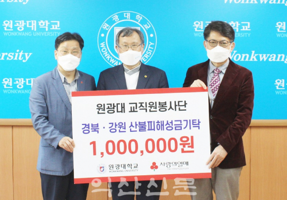 |  | | | ¨Ï ÀÍ»ê½Å¹® | | ¿ø±¤´ëÇб³(ÃÑÀå ¹Ú¸Í¼ö)°¡ Áö³ 3¿ù 4ÀÏ ¹ß»ýÇÑ °æºÏ¡¤°¿ø Áö¿ª ´ëÇü »êºÒ·Î »îÀÇ ÅÍÀüÀ» ÀÒÀº Áֹεé ÇÇÇØº¹±¸ Áö¿øÀ» À§ÇÑ ¼º±Ý 200¸¸¿øÀ» ÀüºÏ»çȸº¹Áö°øµ¿¸ð±Ýȸ¿¡ ±âŹÇß´Ù°í ÀÌ´Þ 22ÀÏ ¹àÇû´Ù.