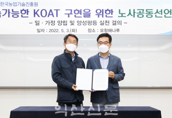 ÀÍ»ê½Ã ¼ÛÇе¿¿¡ À§Ä¡ÇÑ Çѱ¹³ó¾÷±â¼úÁøÈï¿ø(¿øÀå ¾ÈÈ£±Ù, ÀÌÇÏ ³óÁø¿ø)Àº ÀÌ´Þ 3ÀÏ¡¤°¡Á¤ ¾ç¸³ ¹× ¾ç¼ºÆòµî ¹®È Á¶¼ºÀ» À§ÇÑ ³ë»ç°øµ¿ ¼±¾ð¹® °áÀǸ¦ ÅëÇØ¼ ÇູÇÑ ÀÏÅÍ ±¸ÇöÀ» À§ÇÑ º¯È¸¦ ¼±¾ðÇß´Ù.