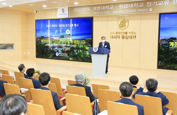 ¿µ¡¤È£³² ´ëÇÐ °£ Ä£¸ñ ¹× ¿ìÀǸ¦ µµ¸ðÇϰí, »óÈ£ ¹ßÀüÀ» À§ÇÑ ±³·ù¸¦ ¸ñÀûÀ¸·Î 1998³â 5¿ù °á¿¬À» ¸ÎÀº ¿ø±¤´ëÇб³(ÃÑÀå ¹Ú¸Í¼ö)¿Í ´ë±¸ °è¸í´ëÇб³(ÃÑÀå ½ÅÀÏÈñ) 2022³â Á¤±â ±³·ù Çà»ç°¡ ÀÌ´Þ 10ÀÏ ¿ø±¤´ë¿¡¼ ¿·È´Ù.