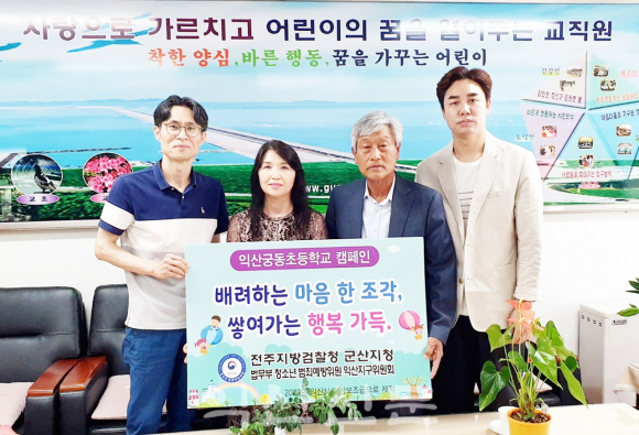 ¹ý¹«ºÎ û¼Ò³â ¹üÁË¿¹¹æÀ§¿ø ÀÍ»êÁö±¸À§¿øÈ¸(ȸÀå ±è±Ù¼·)´Â Áö³ 6¿ù 22Àϰú 29ÀÏ ÀÌÆ²°£ ÃÊ‧Áß 5°³±³¿Í ±â°ü 1°÷À» ¹æ¹®ÇØ ÇöÀå üÇè ¹× ¾ß¿ÜȰµ¿ÀÌ ¸¹Àº û¼Ò³â¿¡°Ô °³ÀÎ¿ë ¾ÈÀü¿ëǰ 4õ°³¸¦ °¢ Çб³Àå°ú °üÀåÀ» ¸¸³ª Àü´ÞÇß´Ù.