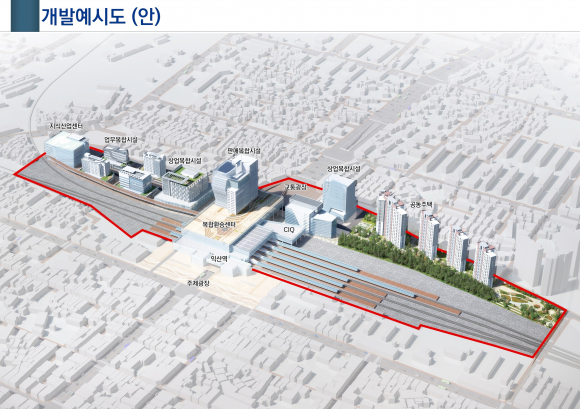 Àͻ꿪 ¼±»ó ºÎÁö¿¡ Àü±¹ ¾îµðµç ºü¸£°Ô À̵¿ÇÒ ¼ö ÀÖ´Â ±¤¿ªº¹ÇÕȯ½Â¼¾ÅÍ¿Í È¯½ÂÁö¿ø½Ã¼³À» °Ç¸³Çϰí Àͻ꿪 ³»ºÎ öµµÂ÷·®±âÁö¸¦ µµ½É ¿Ü°ûÀ¸·Î ÀÌÀüÇØ ÁÖ°Å¡¤»ó¾÷¡¤»ê¾÷½Ã¼³ µîÀ» Æ÷ÇÔÇÑ ´ÜÁö¸¦ Á¶¼ºÇÑ´Ù.