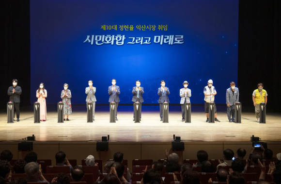Á¤ÇåÀ² ÀÍ»ê½ÃÀåÀº ÀÌ´Þ 5ÀÏ ½Ãû »óȲ½Ç¿¡¼ ¹Î¼± 8±â ù ±âÀÚȸ°ßÀ» °®°í ¡°Áö³ 6³âÀÇ ¼º°ú¸¦ ¹Ï°í ÀÍ»ê ¹Ì·¡¹ßÀüÀ» À§ÇØ À§´ëÇÑ ¼±ÅÃÀ» ÇØÁֽŠ½Ã¹Î ¿©·¯ºÐ²² ´Ù½Ã Çѹø ¸Ó¸®¼÷¿© °¨»çµå¸°´Ù¡±°í ¼µÎ¸¦ ²¨³½ µÚ ¹Î¼± 8±â û»çÁøÀ» Á¦½ÃÇß´Ù.