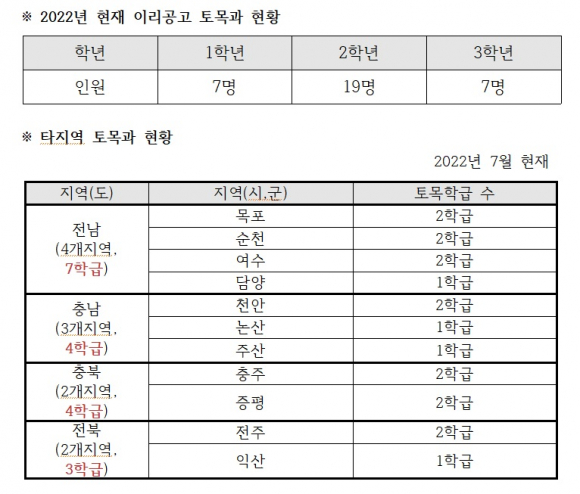 ´õºÒ¾î ¡°ÀüºÏÀÇ °æ¿ì ŸÁö¿ª¿¡ ºñÇØ Åä¸ñ°ú ¹× Åä¸ñÇаú ÇÐ±Þ ¼ö°¡ ÇöÀçµµ ºÎÁ·ÇÑ »óȲÀε¥ À̸®°ø¾÷°í Åä¸ñ°ú°¡ Æó°úµÉ °æ¿ì ÀüºÏ Áö¿ª Çлýµé ¼±ÅñÇÀÇ ÆøÀÌ ÁÙ¾îµé°í ±³»ç ¼ö±ÞÀÇ ºÒ±ÕÇüµµ ÃÊ·¡µÈ´Ù¡±°í ÇÇ·ÂÇß´Ù.