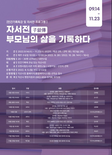 ½Ã´Â ¡®³ª¿Í ºÎ¸ð´ÔÀÇ ÀλýÀ̾߱⡯¸¦ ÅëÇØ ±â·Ï¹®È¸¦ ¸¸µé¾î°¡´Â ¡®½Ã¹Î ÀÚ¼Àü(í»/íßöîî)¡¯ÇÁ·Î±×·¥À» ÀÌ´Þ 14ÀϺÎÅÍ 11¿ù 23ÀϱîÁö ÁøÇàÇÑ´Ù.
