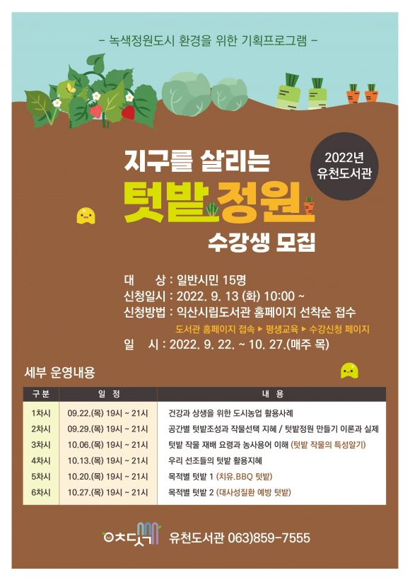 ¡®Áö±¸¸¦ »ì¸®´Â ÅÔ¹çÁ¤¿ø¡¯Àº µµ½Ã³ó¾÷À» Ȱ¿ëÇÑ °ø°£º° ÅÔ¹ç Á¶¼º°ú Ä¡À¯, BBQ, ´ë»çÁúȯ¼º ¿¹¹æ ÅÔ¹ç µî ¸ñÀûº° ÅÔ¹ç Ȱ¿ë °ÀÇ µîÀÌ ÁøÇàµÈ´Ù.