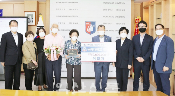 |  | | | ¡è¡è °¿øµµ¿¡ °ÅÁÖÇÏ´Â ÀÌ¿¬ÀÚ¾¾(¿ÞÂÊ)ÀÌ ¿ø±¤´ë ´ëÇйßÀü±â±ÝÀ¸·Î 4õ¿øÀ» ¹Ú¸Í¼ö ÃÑÀå¿¡¼¼ ±âŹÇÏ¸ç ±â³äÃÔ¿µÇß´Ù. ÀÌ¿¬ÀÚ¾¾´Â ¿ø±¤´ë ÀÌÀçºÀ ¸í¿¹±³¼öÀÇ ´©³ªÀÌ´Ù. | | ¨Ï ÀÍ»ê½Å¹® | | ¿ø±¤´ëÇб³(ÃÑÀå ¹Ú¸Í¼ö)´Â 2022³â 9¿ù ´ëÇйßÀü±â±Ý ¸±·¹ÀÌ ±âºÎ¿¡ µ¿´ëÇÐ ÀÌÀçºÀ ¸í¿¹±³¼öÀÇ ´©³ªÀÎ ´©³ªÀÎ ÀÌ¿¬ÀÚ¾¾°¡ 5,000¸¸¿øÀ» ±âŹÇß´Ù°í ¹àÇû´Ù.