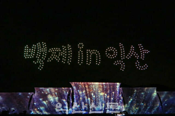 µ¿¼Å¾À» ¿¬°áÇÑ ±æÀÌ 60m¡¤³ôÀÌ10mÀÇ ´ëÇü ¹«ºù½ºÅ©¸°À» ÅëÇØ ¹Ì¸¤»çÁö¸¦ ¹è°æÀ¸·ÎÇÑ ¾ÐµµÀûÀÎ ¹Ìµð¾îÆÄ»çµå¿Í °³¸·½Ä°ú Ãß¼®¿¬ÈÞ¿¡ 300´ëÀÇ µå·ÐÀ¸·Î ¹Ì¸¤»ç Áß¿ø ¸ñžÀ» ½ÇÁ¦Å©±â(43m)·Î ÀçÇöÇÑ µå·Ð¶óÀÌÆ®¼î´Â °ü¶÷°´ÀÇ Åº¼ºÀ» ÀھƳ»´Âµ¥ ÃæºÐÇß´Ù.