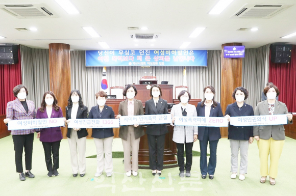 ÀÍ»ê½ÃÀÇȸ(ÀÇÀå ÃÖÁ¾¿À) ¿©¼ºÀÇ¿øµéÀÌ ÀÌ´Þ 7ÀÏ ¿¸° Á¦246ȸ Á¦1Â÷ Á¤·Êȸ Á¦3Â÷ º»È¸ÀÇ¿¡ ¾Õ¼ ¡®¿©¼ººñÇÏ ¾ð¾îÆø·Â ±ÙÀý¿îµ¿¡¯À» ÆîÃÆ´Ù.