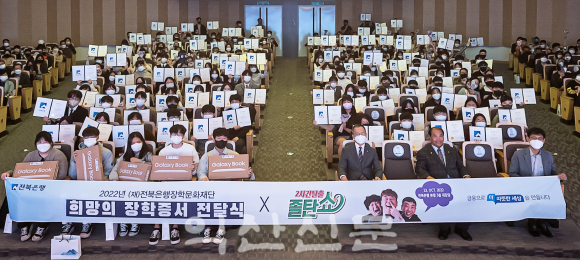 À̳¯ Àü´Þ½Ä¿¡´Â µµ³» Áß¡¤°íµîÇлý 240¸í¿¡°Ô ÃÑ 1¾ï 2õ¸¸¿øÀÇ ÀåÇÐÁõ¼ Àü´Þ½Ä°ú ÇÔ²² µµ³» ´ëÇб³¿¡ ÀçÇÐ ÁßÀÎ 5¸íÀÇ ´ëÇлýµéÀÇ Èñ¸Á Áö¿øÀ» À§ÇÑ ÃÑ 600¸¸¿ø »ó´çÀÇ ³ëÆ®ºÏµµ ÇÔ²² Àü´ÞÇß´Ù.