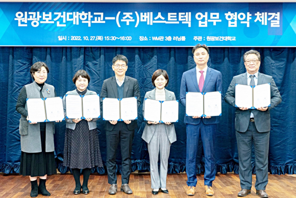 |  | | | ¡è¡è ¿ø±¤º¸°Ç´ëÇб³¿Í ¢ßº£½ºÆ®Åذ¡ ¸ÞŸ¹ö½º ±â¹Ý ¹ÙÀÌ¿ÀÇコ ºÐ¾ß Àη¾缺À» À§ÇÑ Çù¾àÀ» ü°áÇß´Ù. | | ¨Ï ÀÍ»ê½Å¹® | | ¿ø±¤º¸°Ç´ëÇб³(ÃÑÀå ¹éÁØÈì)°¡ ¸ÞŸ¹ö½º ±â¹Ý ¿¡µàÅ×Å© Àü¹®±â¾÷ÀÎ ¢ßº£½ºÆ®ÅØ(´ëÇ¥ ¼¿ì½Â)°ú Á¤ºÎÀçÁ¤Áö¿ø»ç¾÷ÀÇ È¿°úÀû ¿î¿µ ¹× ¼º°ú âÃâÀ» À§ÇÑ ¾÷¹«Çù¾à(MOU)À» 10¿ù 27ÀÏ Ã¼°áÇß´Ù.