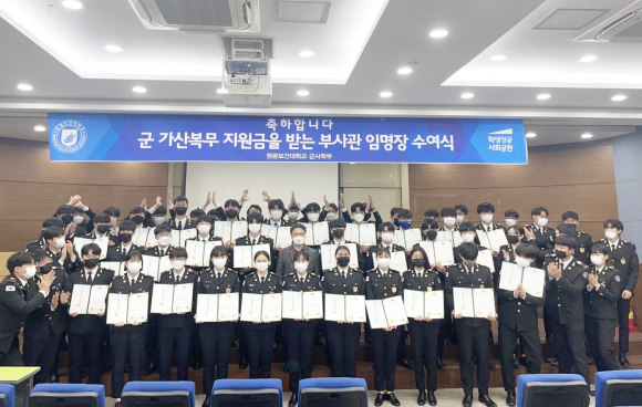 ÇÕ°Ý ÇлýµéÀº À°±ºº»ºÎ·ÎºÎÅÍ 2³â°£ ´ëÇÐ µî·Ï±Ý Àü¾×À» Áö¿ø¹ÞÀ¸¸ç. ´ëÇÐ ÀåÇбݰú´Â º°°³·Î Áö±ÞµÇ´Â ¸¸Å ÇÕ°ÝÀÚµéÀ» ÀçÇбⰣ Áß º¹¼öÀÇ ÀåÇÐÇýÅÃÀ» ¹ÞÀ» ¼ö ÀÖ°í, Á¹¾÷ ÈÄ ÀüÅõºÎ»ç°üÀ¸·Î ÀÓ°üÇØ ´ëÇѹα¹ ±¹¹ÎÀÇ ¾ÈÀüÀ» À§ÇØ ±¹¹æÀ» Ã¥ÀÓÁö´Â ÀÏÀ» ÇÏ°Ô µÈ´Ù./È«µ¿±â ±âÀÚ