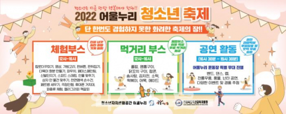 3³â¸¸¿¡ ¿ÏÀü ´ë¸é Çà»ç·Î ÁøÇàµÈ ¡®2022 ¾î¿ï´©¸® û¼Ò³â ÃàÁ¦¡¯´Â ¡®Ã»¼Ò³âÀº Áö±Ý ´çÀå Çàº¹ÇØ¾ß ÇÑ´Ù¡¯, ¡®´Ü Çѹøµµ °æÇèÇÏÁö ¸øÇÑ È·ÁÇÑ ÃàÁ¦ÀÇ À塯À̶ó´Â ½½·Î°Ç ¾Æ·¡ ¾î¿ï´©¸® °÷°÷¿¡¼ ´Ùä·Ó°Ô ÆîÃÄÁ³´Ù.