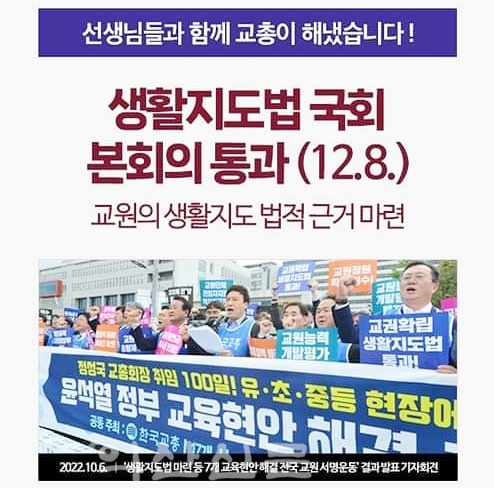 ¶ÇÇÑ ¡°ÇØ´ç ¹ý¾ÈÀ» ±â¹ÝÀ¸·Î ±³»ç°¡ Àû¹ýÇÏ°Ô Ä§ÇØ ÇлýÀ» ÁöµµÇÒ ¼ö ÀÖ´Â ¹æ¹ýÀ» Á¤¸³ÇØ ³ª°¡¾ß ÇÏ¸ç ±³À°È°µ¿ Ä§ÇØ ÇлýÀº ±³½Ç¿¡¼ ºÐ¸®ÇÏ¿© ¸¹Àº ¼±Áø±¹Ã³·³ Çб³Àå µîÀÌ Ã¥ÀÓ °ü¸®ÇÏ´Â ½Ã½ºÅÛ µîµµ °í¹ÎÇØº¸¾Æ¾ß ÇÑ´Ù¡±¸é¼ ¡°±³»ç³ëÁ¶´Â ¹ý¾È °³Á¤ ÀÌÈÄ¿¡µµ ½ÃÇà·É °³Á¤°ú °¢ ½Ãµµº° ±³À°È°µ¿ º¸È£ Á¶·Ê Á¦Á¤ ¹× ÇлýÁöµµ ¸Þ´º¾ó Á¦ÀÛ µî¿¡ ÈûÀ» º¸ÅÅ °Í¡±À̶ó°í °Á¶Çß´Ù.