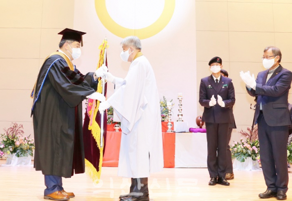 ¹Ú¼ºÅ ÃÑÀåÀº ÃëÀӻ縦 ÅëÇØ ¡°¼¼»óÀÌ ±Þº¯Çصµ ´ëÇÐÀÌ °®´Â ±âº»ÀûÀÎ »ç¸íÀº ¸íÈ®Çϰí, ±×°ÍÀº ¹Ù·Î ±³À°°ú ¿¬±¸¡¤ºÀ»ç¡±¶ó¸ç ¡°¾çÁúÀÇ ±³À°À» ÅëÇØ ¿ì¼öÇÑ ÀÎÀ縦 ¾ç¼ºÇÏ´Â °ÍÀÌ ´ëÇÐÀÇ °¡Àå ÇÙ½ÉÀûÀÎ °¡Ä¡À̰í ÁöÇâÇØ¾ß ÇÒ »ç¸í¡±À̶ó°í °Á¶Çß´Ù.