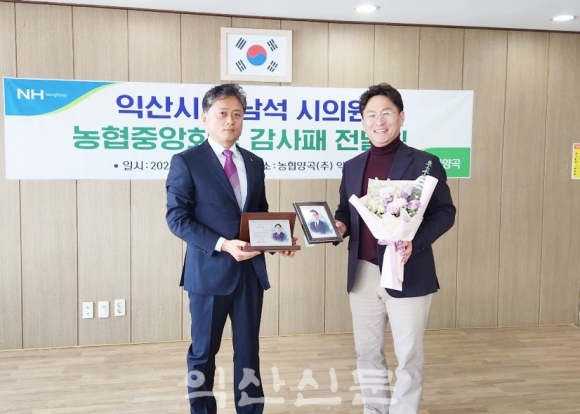 ÀÍ»ê½ÃÀÇȸ ¿¹»ê°á»êƯº°À§¿øÀåÀÎ Á¶³²¼® ÀÇ¿øÀº ³óÇùÁß¾Óȸ·ÎºÎÅÍ Áö¿ª³ó¾÷ ¹ßÀüÀ» À§ÇØ ³ë·ÂÇÑ °ø·Î¸¦ ÀÎÁ¤¹Þ¾Æ 12¿ù 26ÀÏ °¨»çÆÐ¸¦ ¹Þ¾Ò´Ù.