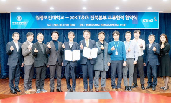 À̳¯ Çù¾à¿¡´Â ¿ø±¤º¸°Ç´ëÇб³ ¹éÁØÈì ÃÑÀ塤¢ßKT&G ÀüºÏº»ºÎ À̺´Å º»ºÎÀå µî °ü°èÀÚ 10¿© ¸íÀÌ Âü¼®ÇØ Áö¿ª»çȸ ¹ßÀüÀ» À§ÇÑ »óÈ£Çù·Â °ü°è ±¸Ãà¿¡ ÇÕÀÇÇß´Ù.