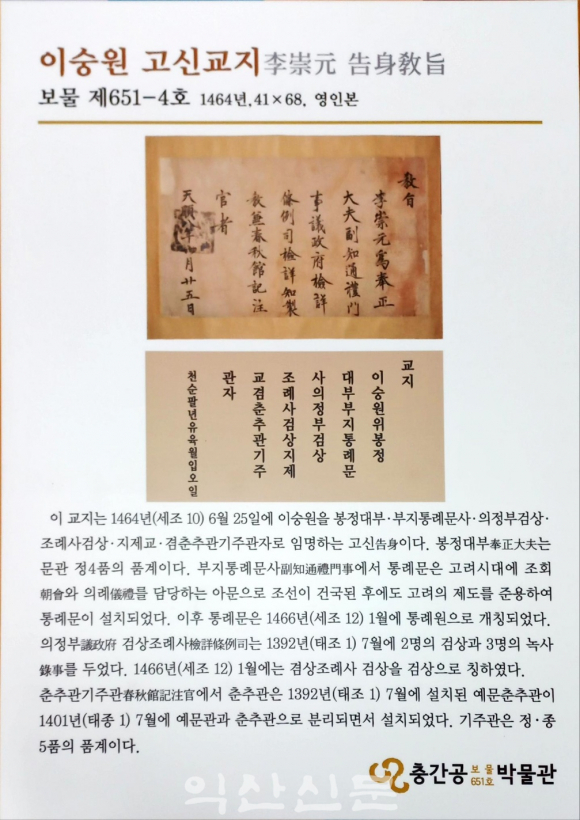 1453³â(´ÜÁ¾ 1³â)ÀÇ ¹®°ú ±ÞÁ¦ÀÚ¿´´ø À̼þ¿øÀÌ °üÁ÷¿¡ ÀÓ¸íµÇ¸é¼ ¹Þ¾Ò´ø ÀÓ¸íÀåµéÀÌ´Ù. ±³Áö´Â 4ǰ ÀÌ»óÀÇ °ü¸®¿¡°Ô ÁÖ¾îÁö´Â ÀÓ¸íÀåÀ» ¸»ÇÑ´Ù.
