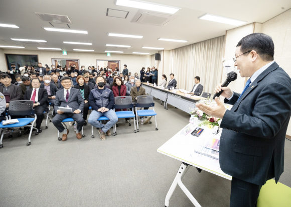 À̹ø ÁֹΰúÀÇ ´ëÈ´Â ½ÃÁ¤¼³¸í°ú °ÇÀÇ»çÇ׸¸À» ûÃëÇß´ø ±âÁ¸ ¹æ½ÄÀ» Å»ÇÇÇØ Àü¹® »çȸÀÚ¸¦ ÃÊû, Á¤ ½ÃÀå°ú ÁֹεéÀÌ °Ý½Ä¾øÀÌ Áø¼ÖÇÑ ´ëÈ·Î Æø³ÐÀº À̾߱⸦ ´ã¾Æ ¹Î»ý ¼ÓÀ¸·Î ´õ ±í¼÷ÀÌ ´Ù°¡°¬´Ù´Â Æò°¡´Ù.