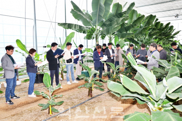 ÀÍ»ê½Ã ½ÅÈﵿ¿¡ À§Ä¡ÇÑ ÀüºÏ³ó¾÷±â¼ú¿ø(¿øÀå ¹Úµ¿±¸)Àº ¾Æ¿´ë ½Ä¹° ¹Ù³ª³ª ¿¬±¸°á°ú¿¡ ´ëÇÑ ÇöÀåÆò°¡È¸¸¦ ÀÌ´Þ 4´×ÀÏ ¾Æ¿´ëÀÛ¹° ½ÇÁõ¿¬±¸¼¾ÅÍ¿¡¼ Àç¹è³ó¾÷ÀΡ¤»ê¾÷ü¡¤°ø¹«¿ø µî 20¸íÀÌ Âü¼®ÇÑ °¡¿îµ¥ ¼ºÈ²¸®¿¡ ¸¶ÃÆ´Ù.