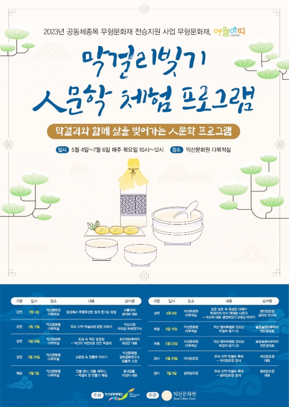5¿ù 4ÀϺÎÅÍ ¸ÅÁÖ ¸ñ¿äÀϸ¶´Ù ÃÑ 10ȸ¿¡ °ÉÃÄ ¡â¿ì¸® Áö¿ª ¸·°É¸® À̾߱â¿Í °í¹®Çå ¼Ó ÀüÅëÁÖ ÀÌ¾ß±â µî ´Ù¾çÇÑ Àι®ÇÐ ¡âµµ½É ¼ÓÀÇ ÀÛÀº ¾çÁ¶Àå°ú ÀÜÀ» ä¿ì°í ºú´Â ¸·°É¸® ÀÜ ¸¸µé±â üÇè ¡âÀÍ»êÀÇ ½Ò·Î ¸¸µå´Â ¸·°É¸® ºú±â üÇè µîÀÇ ¼ö¾÷°ú ¾çÁ¶Àå ´ä»ç µîÀ» ÁøÇàÇÏ´Â °Í.