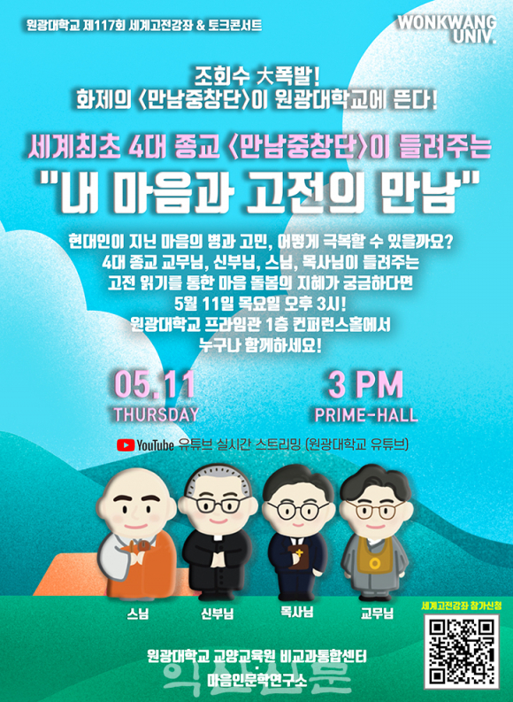 ¿ø±¤´ëÇб³(ÃÑÀå ¹Ú¼ºÅÂ) ±³¾ç±³À°¿ø ºñ±³°úÅëÇÕ¼¾ÅͰ¡ ÁÖ°üÇÏ´Â ¼¼°è°íÀü°Á°¡ ¡®³» ¸¶À½°ú °íÀüÀÇ ¸¸³²¡¯À» ÁÖÁ¦·Î ¿À´Â 11ÀÏ ±³³» ÇÁ¶óÀÓ°ü ÄÁÆÛ·±½º Ȧ¿¡¼ ÁøÇàµÈ´Ù.