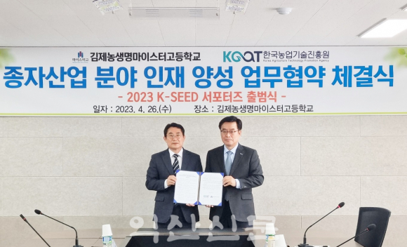 ÀÍ»ê½Ã ¼ÛÇе¿¿¡ À§Ä¡ÇÑ Çѱ¹³ó¾÷±â¼úÁøÈï¿ø(KOAT¡¤ÀÌÇÏ ³óÁø¿ø)°ú ±èÁ¦³ó»ý¸í¸¶À̽ºÅͰíµîÇб³(Çб³Àå ±è¿ëÀç)´Â 4¿ù 26ÀÏ Á¾ÀÚ»ê¾÷ºÐ¾ß Àη¾缺 ¾÷¹«Çù¾à(MOU)À» ü°áÇß´Ù.Çû´Ù.