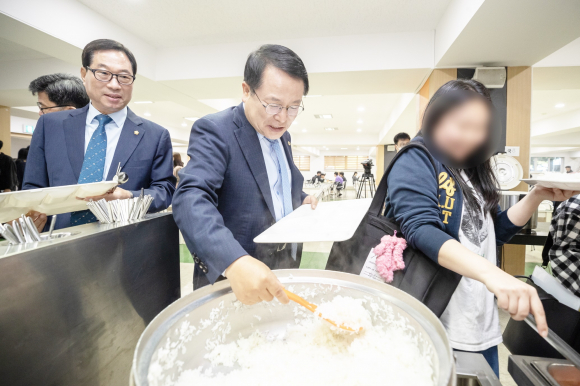 ¹Ú¼ºÅ ÃÑÀåÀº ¡°¸¹Àº Çлý¿¡°Ô õ¿øÀÇ ¾ÆÄ§¹ä ÇýÅÃÀÌ µ¹¾Æ°¥ ¼ö ÀÖµµ·Ï Áö¿øÇØ ÁֽŠÀüºÏµµ¿Í ÀÍ»ê½Ã¿¡ °¨»çÀÇ ¸¶À½À» ÀüÇÑ´Ù¡±¸ç ¡°ÁغñÇÑ ½Ä»ç Àοø 100¸í¿¡ Æ÷ÇÔµÇÁö ¸øÇÑ Çлýµéµµ ¾ÆÄ§ ½Ä»ç¸¦ ÇÒ ¼ö ÀÖµµ·Ï ¿ì¼± ´ëÇÐ Â÷¿ø¿¡¼ ±è¹äÀ¸·Î ½Ä»ç¸¦ Ãß°¡ Áö¿øÇÏ´Â µî Áö¼ÓÇØ¼ ´Ù¾çÇÑ ¹æ¾ÈÀ» ¸¶·ÃÇØ ³ª°¡°Ú´Ù¡±°í ¹àÇû´Ù.