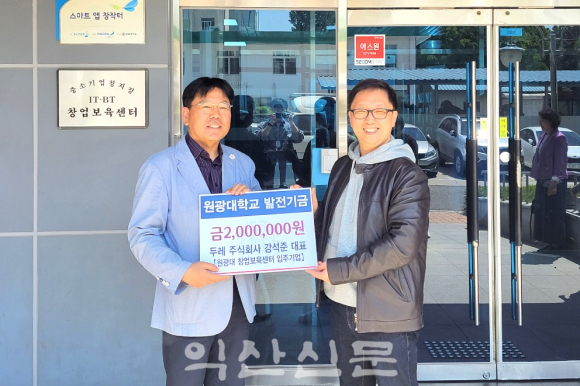 ¿ø±¤´ëÇб³(ÃÑÀå ¹Ú¼ºÅÂ) â¾÷º¸À°¼¾ÅÍ ÀÔÁÖ±â¾÷ÀÎ ÁÖ½Äȸ»ç µÎ·¹(´ëÇ¥ °¼®ÁØ)°¡ ´ëÇйßÀü±â±Ý 200¸¸¿øÀ» ±âŹÇß´Ù.