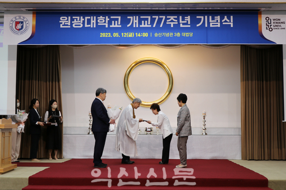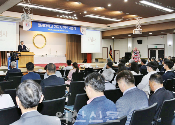 ¿ø±¤´ëÇб³(ÃÑÀå ¹Ú¼ºÅÂ)´Â °³±³ 77Áֳ⠱â³ä½ÄÀ» ¿ø±¤Çпø ¼º½ÃÁ¾ ÀÌ»çÀå°ú ¹Ú¼ºÅ ÃÑÀåÀ» ºñ·Ô ±³Á÷¿ø¡¤Çлý µî 200¿© ¸íÀÌ Âü¼®ÇÑ °¡¿îµ¥ ÀÌ´Þ 12ÀÏ ±³³» ¼þ»ê±â³ä°ü 3Ãþ ´ë¹ý´ç¿¡¼ °³ÃÖÇß´Ù.