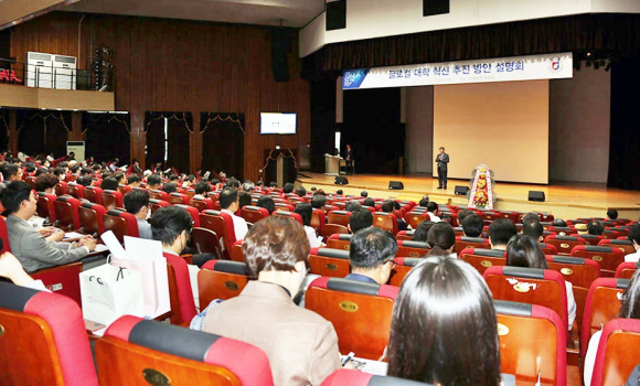¿ø±¤´ë´Â ±³À°ºÎ°¡ ¿ä±¸ÇÏ´Â ¹Ì·¡ÁöÇâÀûÀÎ ´ã´ëÇÑ Çõ½Å¿¡ ¸ÂÃç ´ëÇÐÅëÇÕ ¹× Á¦µµ°³Æí, ¹Ì·¡Çü ÀÎÀç¾ç¼º, Áö¿ª»ó»ý °¡Ä¡Ã¢Ãâ, Áö¿ª»çȸ °øÀ¯¡¤Çù·Â µî Çõ½ÅÀü·«À» ¸¶·ÃÇßÀ¸¸ç, ¼³¸íȸ¿¡ Âü¼®ÇÑ ±¸¼º¿øµéÀº ±Þ°ÝÇÑ ÇзÉÀα¸ °¨¼Ò ¹× Áö¿ª ¼Ò¸êÀ̶õ À§±â°¨¿¡ µû¶ó Àû±ØÀûÀÎ Çù·Â ÀÇÁö¸¦ ´ÙÁ³´Ù.