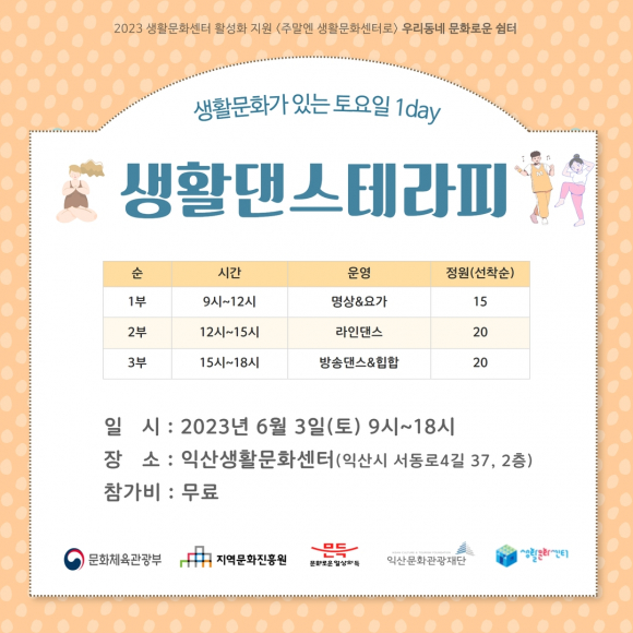Áö¿ª¹®ÈÁøÈï¿ø ÁÖÃÖ 2023 »ýȰ¹®È¼¾ÅÍ È°¼ºÈ Áö¿ø ¡®ÁÖ¸»¿£ »ýȰ¹®È¼¾ÅͷΡ¯ °ø¸ð»ç¾÷ ¼±Á¤¿¡ µû¶ó ¿î¿µµÇ´Â À̹ø ÇÁ·Î±×·¥Àº ÁֹεéÀÌ Á÷Á¢ Âü¿©ÇÑ ¡®Áֹαâȹ´Ü¡¯¿¡¼ ±¸¼ºÇÏ°í ¡®Àü¹®°¡ ½Ç¹«ÇùÀÇȸ¡¯¸¦ ÅëÇØ ±¸Ã¼Àû ¿î¿µ ¹æ¾ÈÀ» ¸¶·ÃÇØ ÁøÇàÇÑ´Ù.