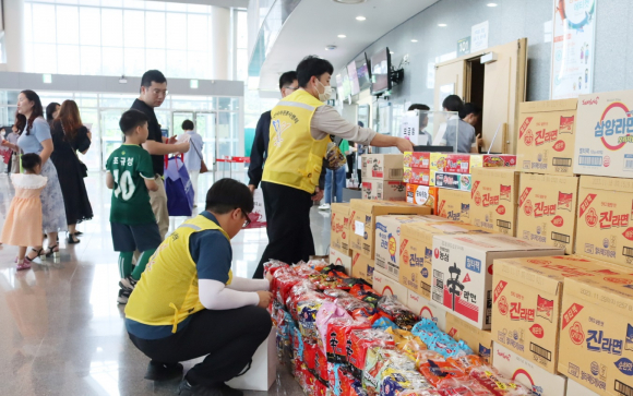 |  | | | ¡è¡è Á¤ÇåÀ² ÀÍ»ê½ÃÀåÀÌ ÀÍ»ê ¶ó¸é À½¾Çȸ¿¡ ¹°Ç° µîÀ» Àü´ÞÇϰí ÀÖ´Ù. | | ¨Ï ÀÍ»ê½Å¹® | | À̳¯ Çà»ç¿¡¼ ÀÔÀå·á·Î ¹ÞÀº ¶ó¸éÀº ÃÑ 4200ºÀ( 420¸¸¿ø »ó´ç)°ú Çö±ÝÀº 130¸¸¿ø µî ÃÑ 530¿©¸¸¿ø¾îÄ¡·Î Áö¿ªÀÇ ¼Ò¿Ü ÀÌ¿ôµé¿¡°Ô Àü´ÞµÈ´Ù.