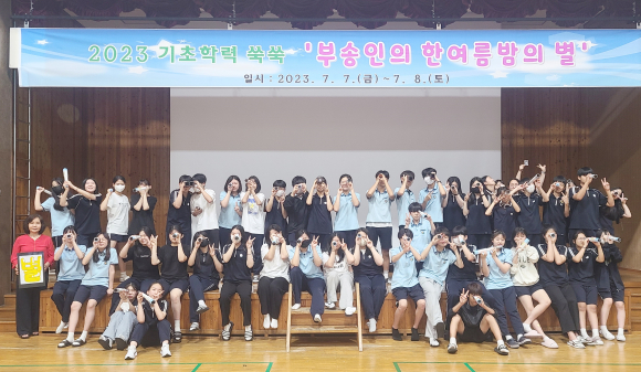 ÀÍ»êºÎ¼ÛÁßÇб³(±³Àå ÀÌÇýÀº)´Â ¡®2023 ºÎ¼ÛÀÎÀÇ ÇÑ¿©¸§ ¹ãÀÇ º°¡¯Ä·ÇÁ¸¦ ÀÌ´Þ 7~8ÀÏ ¾çÀϰ£ °£ ±³³»¿¡¼ ¿î¿µÇØ 63¸íÀÇ Âü¿©ÇлýµéÀº ±âÃÊÇз Çâ»óÀ» ÅëÇÑ ÀÚÁ¸°¨ ȸº¹ ¹× ÀÚ±âÁÖµµÀû ÇнÀ´É·Â ¹è¾çÀ» µµ¸ðÅä·Ï Çß´Ù.