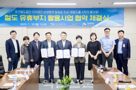 ÀÍ»ê½Ã¿Í ±¹°¡Ã¶µµ°ø´ÜÀº ÀÌ´Þ 10ÀÏ ±º»ê½Ãû¿¡¼ ÀåÇ×¼± Æóöµµ À¯ÈÞºÎÁö Ȱ¿ë»ç¾÷ Çù¾à½ÄÀ» ü°áÇÏ°í ¿øÈ°ÇÑ »ç¾÷À» ÃßÁøÀ» À§ÇØ »óÈ£Çù·ÂÇϱâ·Î ¶æÀ» ¸ð¾Ò´Ù.