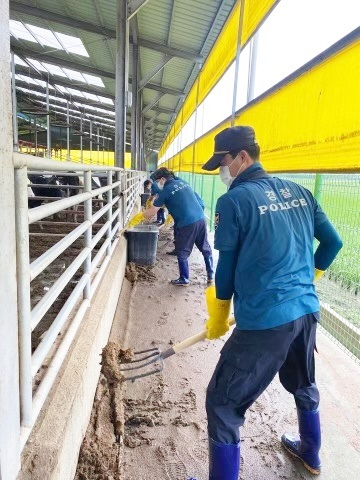°æÂû°üµéÀº ħ¼öµÆ´ø Ãà»ç¿¡ ½×ÀÎ Åä»ç¸¦ »ðÀ¸·Î °È¾î³»°í ºñ´ÒÇϿ콺¿¡¼ ¼ö¹Ú µîÀÇ ÇÇÇØÀÛ¹°À» °È¾î³»¸ç ¾²·¹±â¸¦ Á¦°ÅÇÏ¸ç ±¸½½¶¡À» È긮°í ÀÖ´Ù.