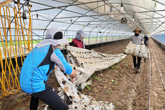 ÀÍ»ê½Ã ½ÅÈﵿ¿¡ À§Ä¡ÇÑ ÀüºÏµµ³ó¾÷±â¼ú¿øÀº ÀÌ´Þ 21ÀÏ ¼öÇØ º¹±¸ Àϼյ½±â¸¦ ÃßÁøÇÏ°í ¿©¸§Ã¶ ÁýÁßÈ£¿ì·Î ÇÇÇØ¸¦ ÀÔÀº ³ó°¡¸¦ µ½°í ¾î·Á¿òÀ» ÇÔ²² ³ª´©´Â ½Ã°£À» °¡Á³´Ù.