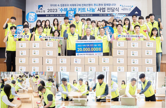 À̳¯ ¹éÁ¾ÀÏ ÀºÇàÀå, Á¤¿øÈ£ ³ëÁ¶À§¿øÀåÀ» ºñ·ÔÇØ ÀüºÏÀºÇàÁö¿ª»ç¶ûºÀ»ç´Ü 30¿©¸íÀº Äð¸ÅÆ®, ¼±Ç³±â, Äð½ºÄ«ÇÁ µîÀ¸·Î ±¸¼ºµÈ 2000¸¸¿ø »ó´ç ¡®¼öÇØ ±Øº¹ ŰƮ¡¯ 500¹Ú½º¸¦ Á¦ÀÛÇÏ´Â ºÀ»çȰµ¿¿¡ Âü¿©ÇØ ±¸½½¶¡À» Èê·È´Ù.