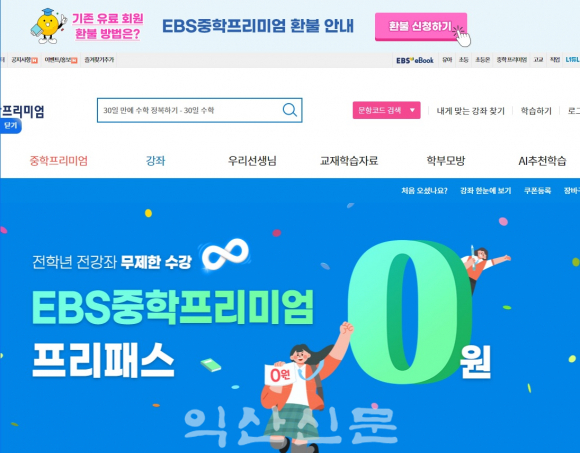 EBS¿¡¼ ¿î¿µÇÏ´Â ÁßÇлý ´ë»ó À¯·á ¿Â¶óÀÎ ±³À° ¼ºñ½ºÀÎ ¡®EBS ÁßÇÐ ÇÁ¸®¹Ì¾ö¡¯°Á°¡ Àü¸é ¹«·á·Î ÀüȯµÆ´Ù.