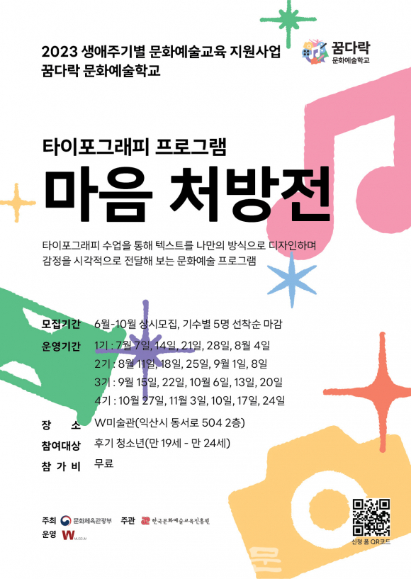 W¹Ì¼ú°ü(°üÀå ½ÅÁÖ¿¬)Àº 2023 »ý¾ÖÁֱ⺰ ¹®È¿¹¼ú±³À° ¡®²Þ´Ù¶ô ¹®È¿¹¼úÇб³¡¯ ¿î¿µ±â°üÀ¸·Î ¼±Á¤µÅ ¡®Ä£±¸°¡ ¿¹¼ú°¡ <¸¶À½ ó¹æÀü>¡¯ ÇÁ·Î±×·¥ Âü¿©ÀÚ¸¦ ¸ðÁýÇÑ´Ù.