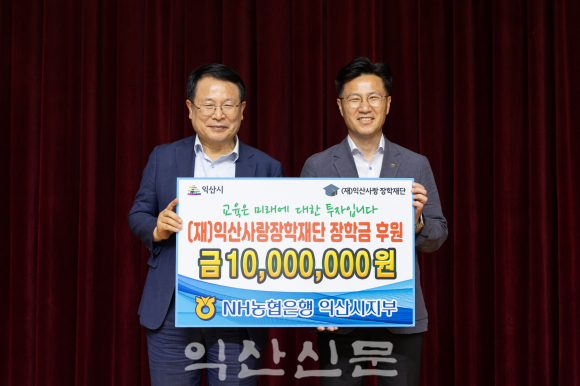 ¶ÇÇÑ NH³óÇùÀºÇà ÀÍ»ê½ÃÁöºÎ´Â ÇлýµéÀÇ ¹Ì·¡¸¦ ÀÀ¿øÇÏ´Â ¸¶À½À» ´ã¾Æ 1,000¸¸¿øÀÇ ÀåÇбÝÀ» ±âŹÇÏ¸ç ¶æ ±íÀº ÀÚ¸®¸¦ ÇÔ²² Çß´Ù.