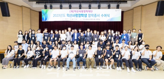 À̳¯ ÀÍ»ê½Ãû¼Ò³â¼ö·Ã°ü¿¡¼ ¿¸° ¡®ÀÍ»ê»ç¶û ÀåÇÐÀç´Ü ÀåÇÐÁõ¼ ¼ö¿©½Ä¡¯¿¡´Â ÀåÇлý, Çкθð, ÀåÇÐÀç´Ü ÀÓ¿øÁø µîÀÌ Âü¼®ÇÑ °¡¿îµ¥ ÀåÇлý ´ëÇ¥ 70¿©¸í¿¡°Ô ÀåÇÐÁõ¼°¡ ¼ö¿©µÆ´Ù.