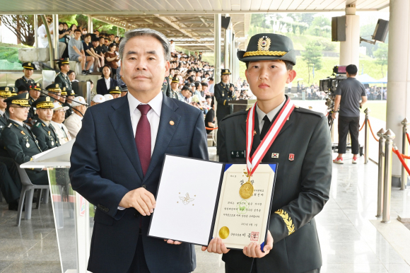 |  | | | ¡è¡è ÀÌÁ¾¼· ±¹¹æºÎÀå°üÀÌ ´ëÅë·É»óÀ» ¼ö»óÇÑ ÃÖ¼±¾Æ ÇÏ»ç¿Í ±â³ä»çÁøÀ» ÃÔ¿µÇϰí ÀÖ´Ù. | | ¨Ï ÀÍ»ê½Å¹® | | ¿µ¿¹ÀÇ ±¹¹æºÎÀå°ü»óÀº ÃÖ¼±¾Æ(20¼¼, ¿©) Çϻ簡 ¼ö»óÇß´Ù.
