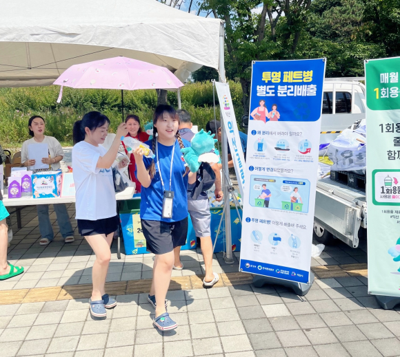 ÄܼƮ ¹æ¹®°´µé¿¡°Ô¡®¿Ã¹Ù¸¥ Åõ¸íÆäÆ®º´ ºÐ¸®¹èÃâ¹ý¡¯À» ¾È³»ÇØ °ø¿¬Àå ³»¿¡ ¹°¡¤À½·á µîÀ» ¸¶½Å ÈÄ ¹èÃâÇÏ´Â Åõ¸íÆäÆ®º´ ÀçȰ¿ë¿¡ Àû±Ø Âü¿©ÇÒ ¼ö ÀÖµµ·Ï À¯µµÇß´Ù.