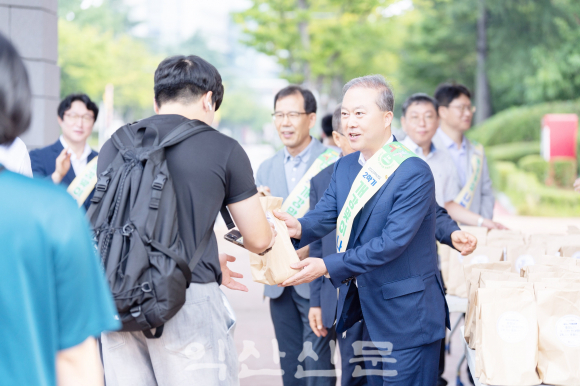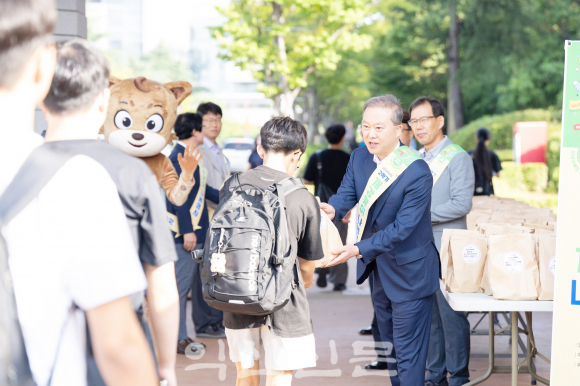À̳¯ ¿ÀÀü 8½Ã 20ºÐºÎÅÍ ¾ç¿ÀºÀ ÃÑÀå°ú º»ºÎ º¸Á÷ÀÚ, ±×¸®°í ÇлýÀÚÁöÄ¡±¸ ÀÓ¿øµéÀº Á¤¹®°ú ¼¹®¡¤ºÏ¹®¡¤ µ¿¹® µî¿¡¼ µî±³ÇÏ´Â Çлýµé¿¡°Ô 2,700¸í ºÐÀÇ »§°ú ¿¡³ÊÁö¹Ù, À½·á µî Àü´ÞÇϸç Àλ縦 ³ª´³´Ù.
