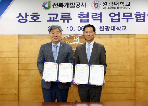 ¿ø±¤´ëÇб³(ÃÑÀå ¹Ú¼ºÅÂ)¿Í ÀüºÏ°³¹ß°ø»ç(»çÀå ÃÖÁ¤È£)°¡ »óÈ£¹ßÀü µµ¸ð¸¦ À§ÇÑ ¾÷¹«Çù¾àÀ» ü°áÇß´Ù.