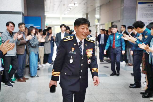 À̸®°í(23ȸ)¿Í ¿ø±¤´ë¸¦ Á¹¾÷ÇÑ °È²¼ö Á¦34´ë ÀüºÏ°æÂûûÀå (60¡¤°£ºÎÈĺ¸ 37±â)ÀÌ ÀÌ´Þ 13ÀÏ ÅðÀÓ½ÄÀ» °®°í °øÁ÷»ýȰÀ» ¸¶¹«¸®Çß´Ù.