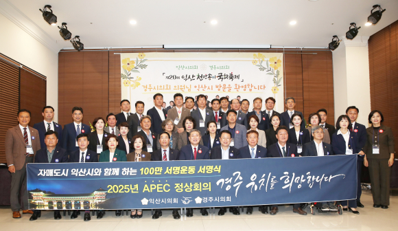 ¶Ç ÀÍ»ê½ÃÀÇȸ ÀÇ¿øµéÀÌ ¡®2025 APEC °æÁÖ À¯Ä¡ 100¸¸ÀÎ ¼¸í¿îµ¿¡¯¿¡ µ¿ÂüÇÏ¸ç °æÁÖ À¯Ä¡¸¦ Àû±Ø ÁöÁöÇß´Ù.