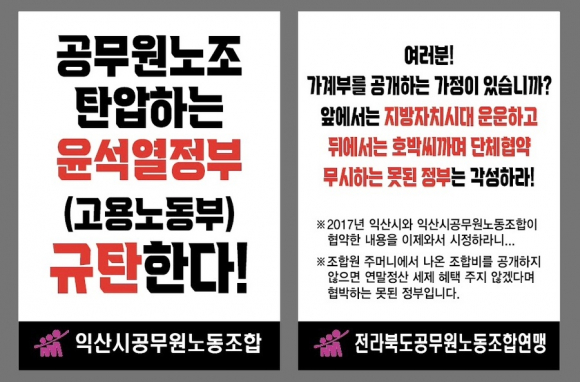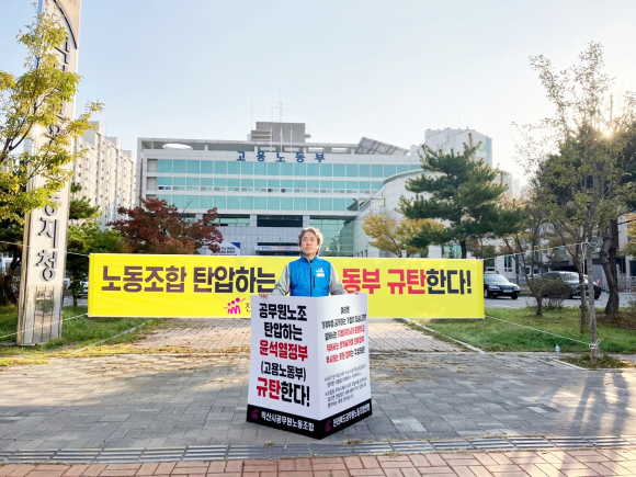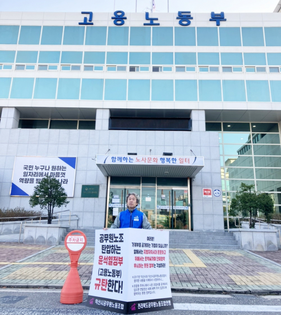 ÇÑÃ¢ÈÆ ÀÍ»ê½Ã °ø¹«¿ø³ëµ¿Á¶ÇÕ(ÀÌÇÏ ÀͰø³ë) À§¿øÀåÀº ÀÌ´Þ 23ÀϺÎÅÍ °í¿ë³ëµ¿ºÎ ÀÍ»êÁöû ¾Õ¿¡¼ 1ÀÎ ½ÃÀ§¸¦ ÆîÄ¡¸ç Á¤ºÎÀÇ ³ëµ¿ ź¾ÐÀ» °µµ ³ô°Ô ºñÆÇÇϰí ÀÖ´Ù.