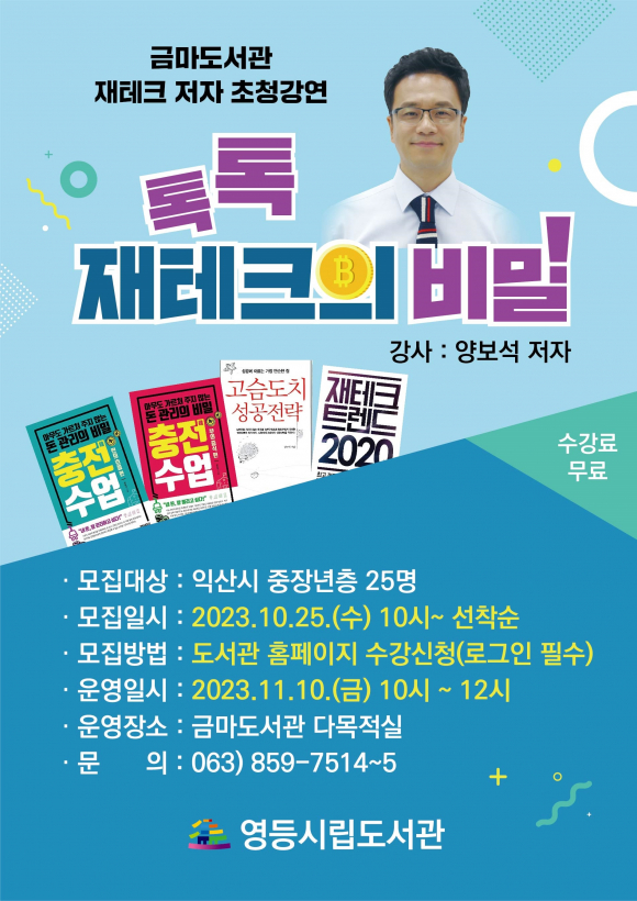 ÃÊû °¿¬Àº ÀÍ»ê½Ã ÅëÇÕµµ¼°ü ´©¸®Áý(https://lib.iksan.go.kr)À» ÅëÇØ 10¿ù 25ÀϺÎÅÍ ½Åû°¡´ÉÇÏ¸ç ±âŸ ÀÚ¼¼ÇÑ »çÇ×Àº ±Ý¸¶µµ¼°ü(859-7512)À¸·Î ¹®ÀÇÇÏ¸é µÈ´Ù./¹ÚÇØÁ¤ ±âÀÚ